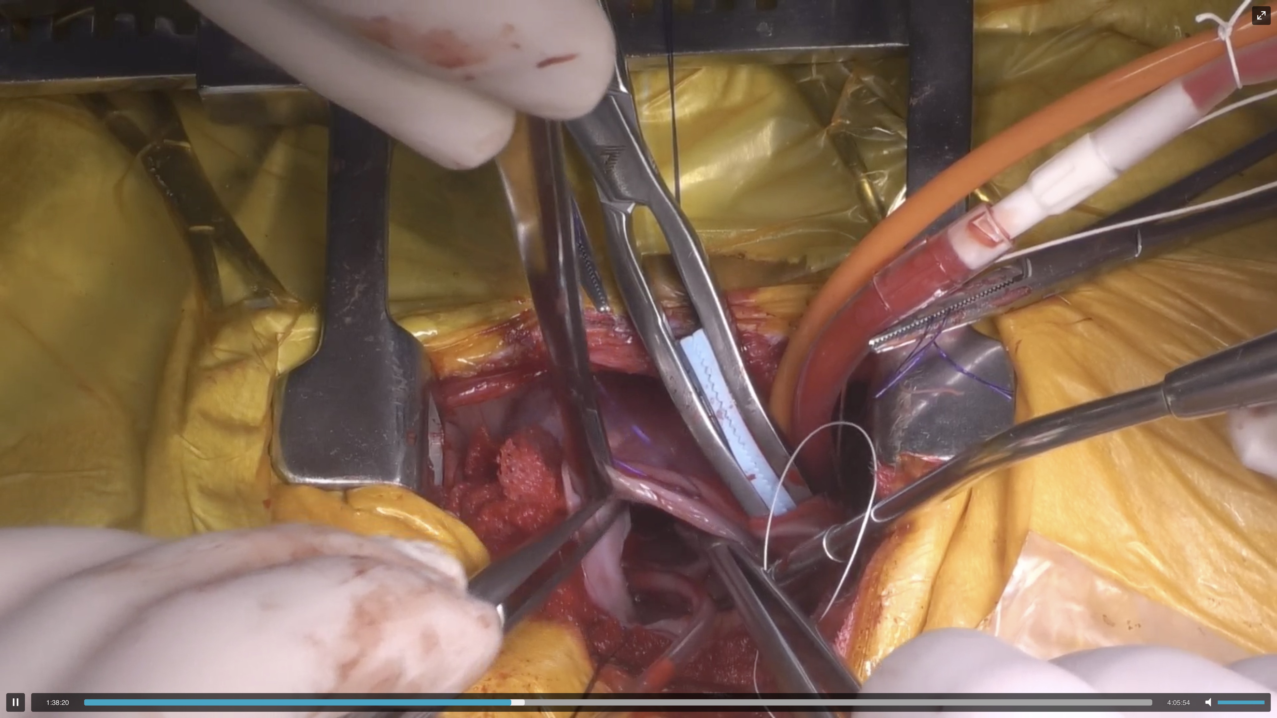 縫合糸を用いて腱索の腱索再建および弁輪縫縮を行い、最後に僧帽弁からの逆流が改善したことを確認し左心房を縫合します。